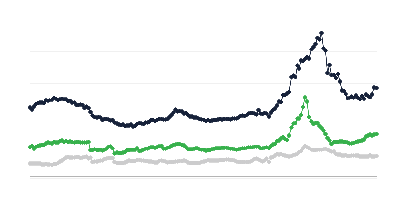 Vidutinės pasirinktų maisto produktų kainos.